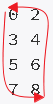 이동순서 = { ↓ ↓ ↓ → ↑ ↑ ↑ ← }으로 다음과 같습니다.