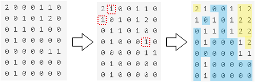 ② 경우의 수마다 바이러스 확산 후 안전영역 크기를 구합니다. ← BFS