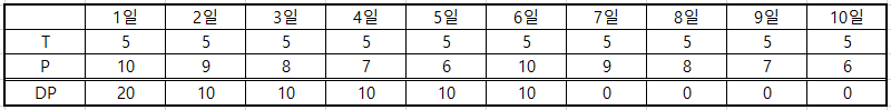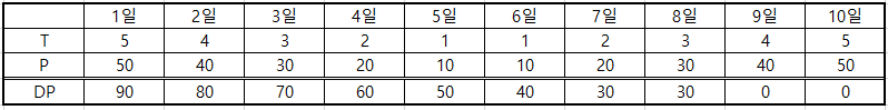 마지막날인 [10일]은 퇴사 이후에 진행되어야 하므로 cost = 0