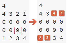 c. 바로 오른쪽 [3]의 위치로 간다. → Total Distance: 9 + 1 = 10