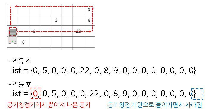 // 첫번째 원소는 공기청정기에서 미세먼지 없는 공기가 나온 것.