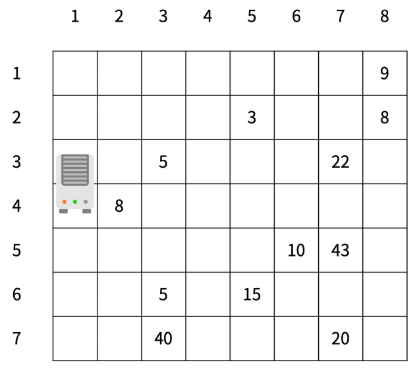 b. 확산되는 양 = A(r, c) / 5 (소수점은 버린다.)