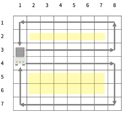 공기청정기는 1대만 존재(가장 윗 행, 아랫 행과 두 칸이상 떨어져 있다는 전제).