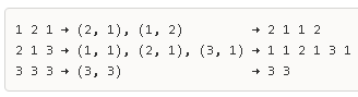 1열: (1, 1) - (2, 1) - (3, 1) ← 나타난 횟수가 동일, 숫자의 크기로 정렬