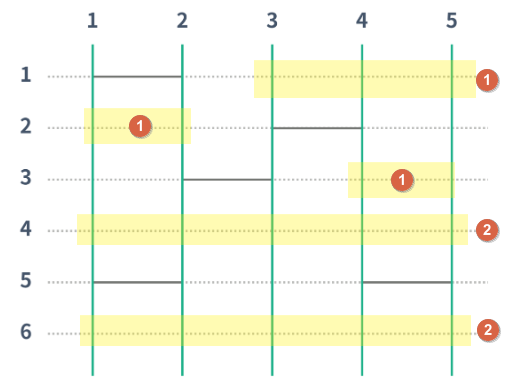 ex) 5번째 세로선에서 좌측으로 빠지는 가로선이 한개 있으면