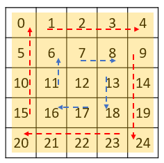 ② 회전 순서가 정해지면 배열 내부에서 특정 영역(정사각형)에 대한 회전(재배치)
