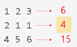 『배열 A의 값』은 각 행에 있는 모든 수의 합 중 최솟값을 의미.