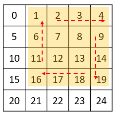 맨 마지막 원소를 제일 앞에 둬서 List = {1, 2, 3, 4, 9, 14, 19, 18, 17, 16, 11, 6}