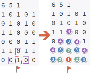 행 위치에 상관없이 거리만 같으면 왼쪽에 있는 것이 우선순위가 높기 때문에