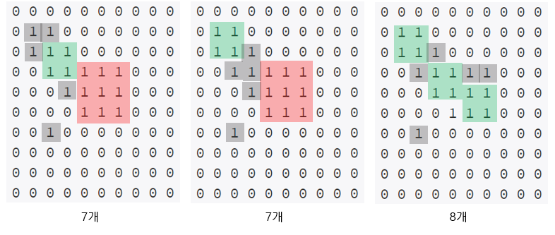 ② 『 1 』을 발견하였을 경우, 작은 크기(1x1) 부터 큰 크기(5x5) 재귀 탐색