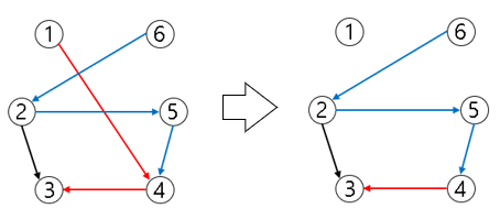 * 그래프가 사이클을 형성하여 위상정렬 되지 않는지 확인 필요.