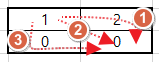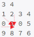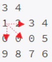각 칸에서 이동 방향은 (r+1, c), (r, c+1), (r+1, c+1)로 아래와 같습니다.