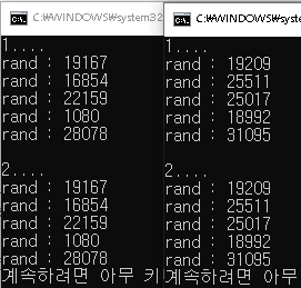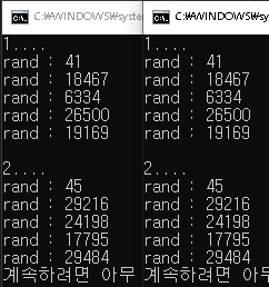 (srand 함수를 호출하지 않고, rand() 호출한다면 srand(1)로 설정된 상태라고 보시면 됩니다.)