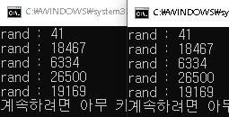 하지만 srand(time(NULL));사이에 시간이 어느정도 소용되는 구간이 발생한다면 다른 결과가 나올 것입니다.