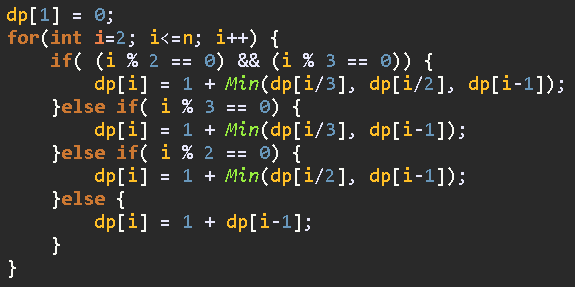 = 1 + Min(dp[i / 3] + dp[i / 2] + dp[i-1])