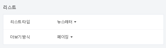 "뉴스레터" 방식에 "페이징"이 보이도록 설정