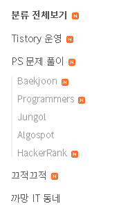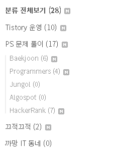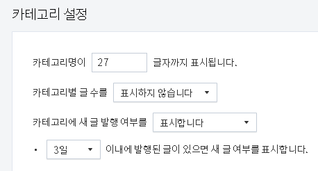 카토게리별 글 수를 "표시"한다면 아래와 같이 보인다.