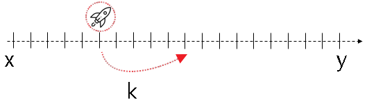 * 출발점 x에서 k=1만큼 이동하여 로켓의 위치 = 1
