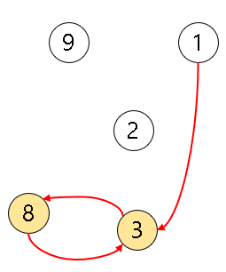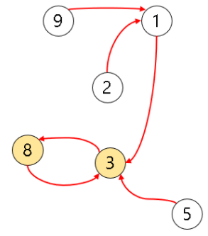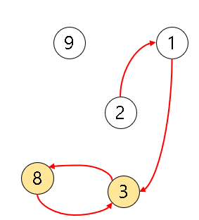 * 처음 [3]을 방문 했던 시점에서 재방문 전 [8]까지 사이클을 형성