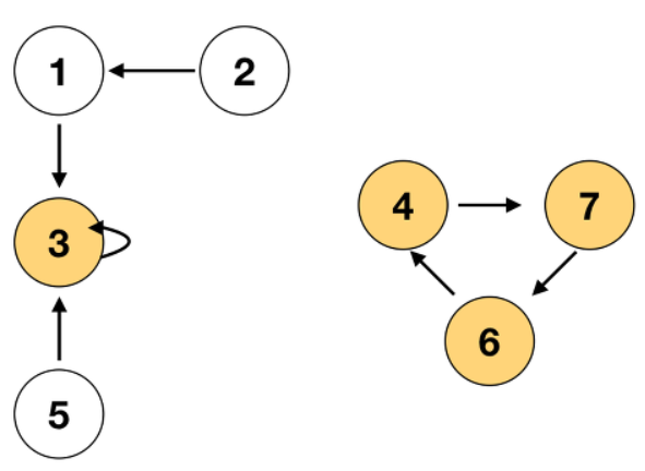 // 싸이클을 형성하고 있는 원소를 무엇인지 구하는 것이 아니므로 개수만 파악한다.
