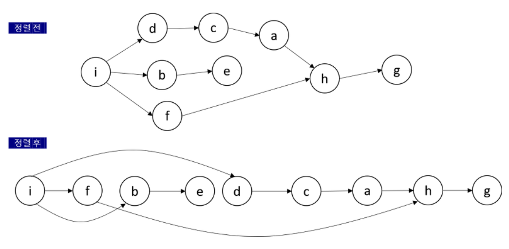 DAG에서 간선의 방향이 모두 한 방향으로 흘러가게 정점들을 정렬됩니다.