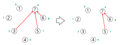 - 정점 ⑤의 경우 max(7, 11 + 1) = 12