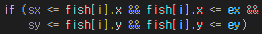 if (sx <= fish[i].x && fish[i].x <= ex &&