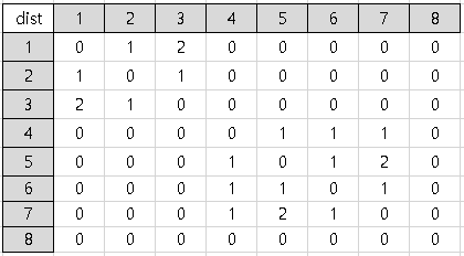 플로이드 와샬(Floyd Warshall) 알고리즘을 이용한 테이블