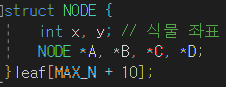 식물의 최대 개수 = 100,000 → 위치(x, y)와 4개의 포인터를 가지는 구조체