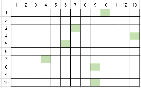 ex) (5, 6) (8, 9) (4, 13) (1, 10) (7, 4) (10, 9) (3, 7)