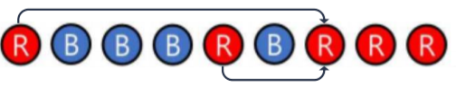 ② 왼쪽부터 연속된 색깔의 개수를 세어서 그만큼 해당색의 전체개수에서 뺀다.