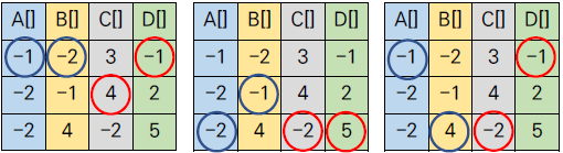 ▶ A[i] = -1일 때, A[i] + B[j] → {-3, -2, 3}