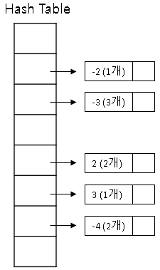 ① (A[i] + B[j])를 해시테이블에 key와 개수 변수 cnt로 저장