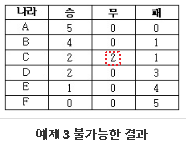 단순히 이긴 횟수, 비긴 횟수, 패배한 횟수만을 비교해서 답을 구할 수 없습니다.