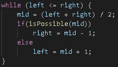 주어지는 그룹 개수(M)을 만족하면 좀 더 작은 기준을 찾기 위해 좌측 영역 탐색