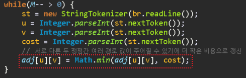 // 최소 거리 비용 갱신