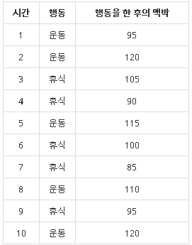 맥박 상태에 따라 최대한 운동을 하는 Greedy 방식 이용