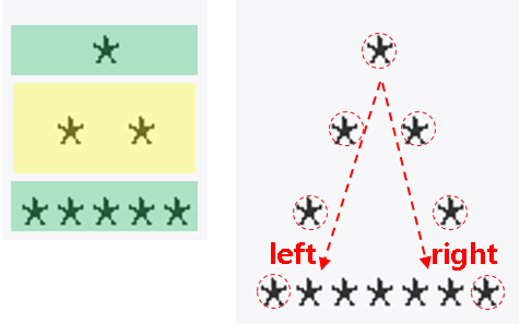 ▷ left 이전까지는 공백 출력하고 * 한개 출력