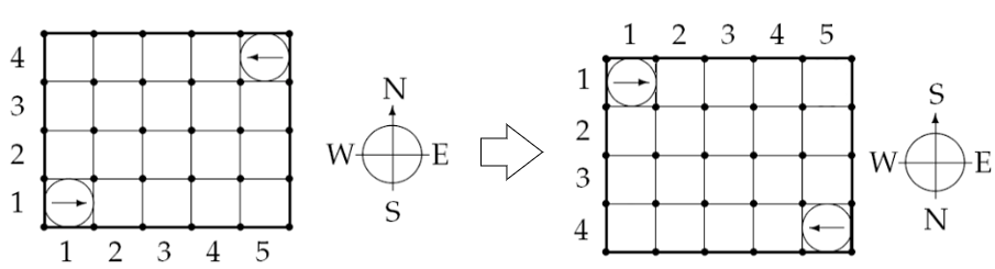 - 방향을 바뀌는 경우, 4의 배수로 회전한다면 1바퀴를 회전하기 때문에 주어진 반복 횟수 % 4 처리합니다.
