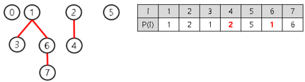 ▶ 집합을 {0} / {1, 3, 6, 7} / {2, 4} / {5}로 구분할 수 있습니다.