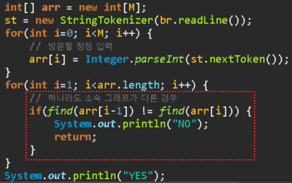 if(find(arr[i-1]) != find(arr[i])) {