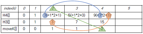 → H4[n]을 최적으로 하는 k는 1, 2, 3, 4 중에서 2(= moveK[5]) 입니다.