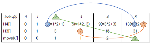 → H4[n]을 최적으로 하는 k = 1 = moveK[2]