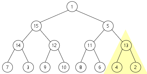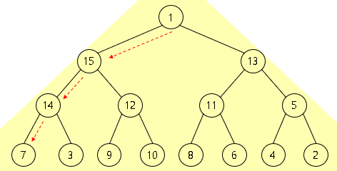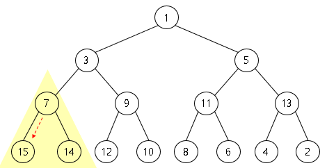 부모 노드 7 < 자식 노드 15, 14 입니다.