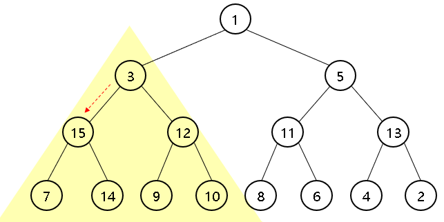 부모 노드 3 < 자식 노드 15, 12 이므로