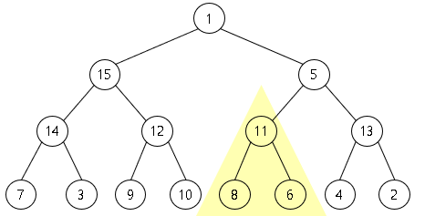 부모노드 11 > 자식 노드 8, 6 이므로 변화 x