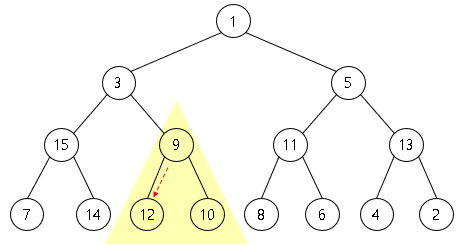 부모 노드 9 < 자식 노드 12, 10 이므로
