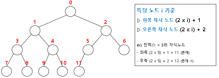배열 인덱스를 통해 쉽게 부모-자식 노드를 알 수 있습니다.