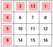 첫번째 행 1칸 회전 + 첫번째 열 1칸 회전) 7개의 숫자가 달라짐
