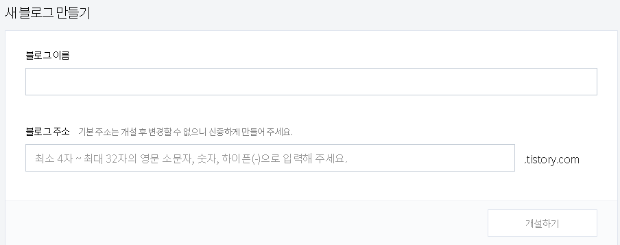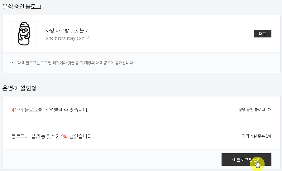 티스토리 블로그 개설이 가능했지만 [초대장 제도]가 사라지면서 제한이 비교적 자유로워졌다.